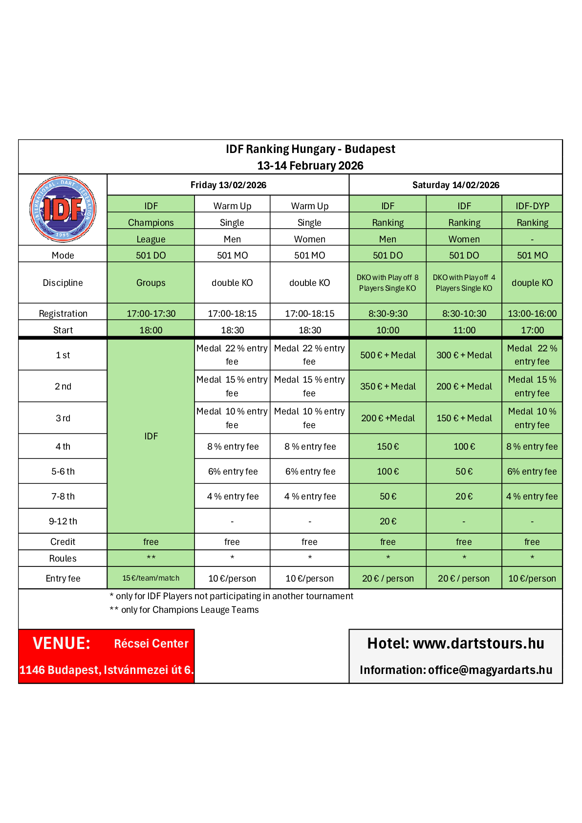 IDF World Soft Dart Ranking 1000 & Champions League